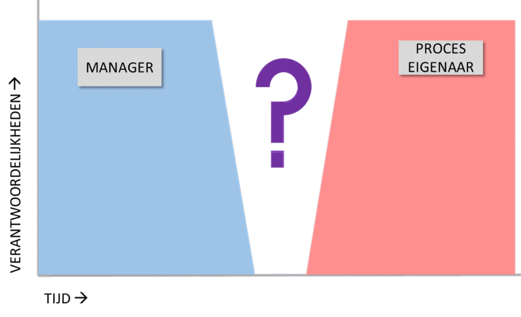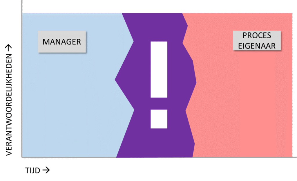 Als de afdelingsmanager zijn verantwoordelijkheden behoudt en tegelijkertijd de nieuwe proceseigenaar ook verantwoordelijkheden voor het proces oppakt, ontstaat er frictie.
